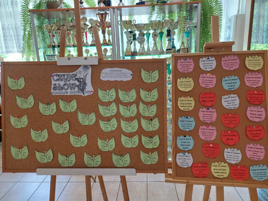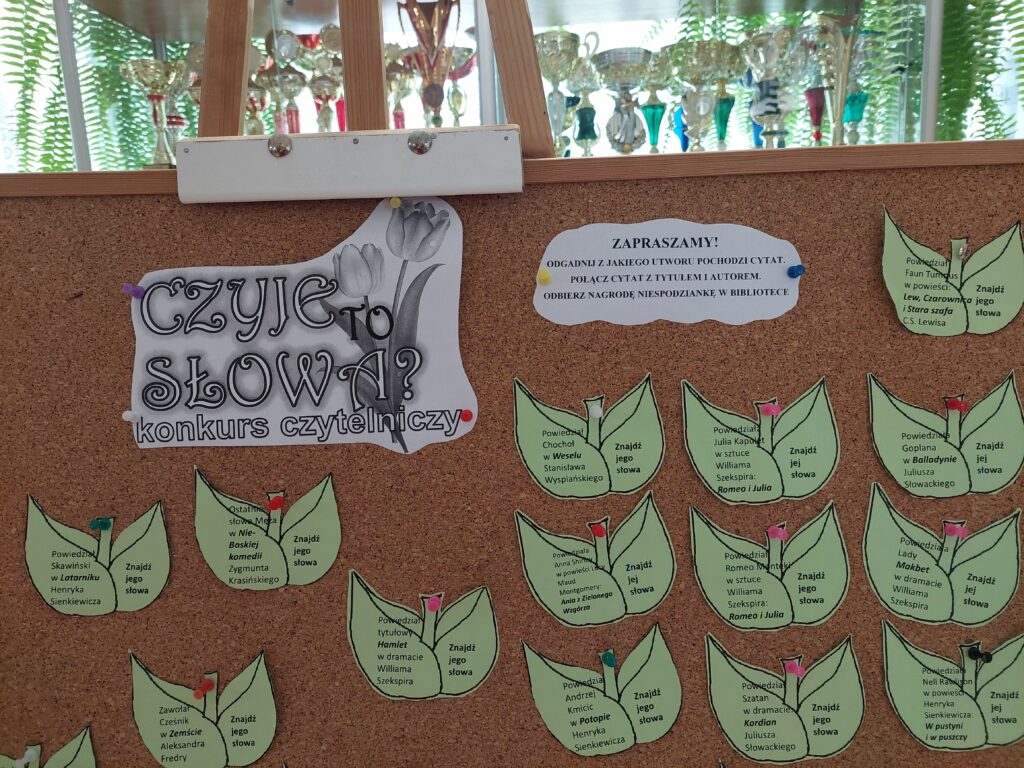 Biblioteka szkolna zaprasza do udziału w konkursie czytelniczo- literackim „Czyje to słowa?”. Na uczestników czekają niespodzianki.