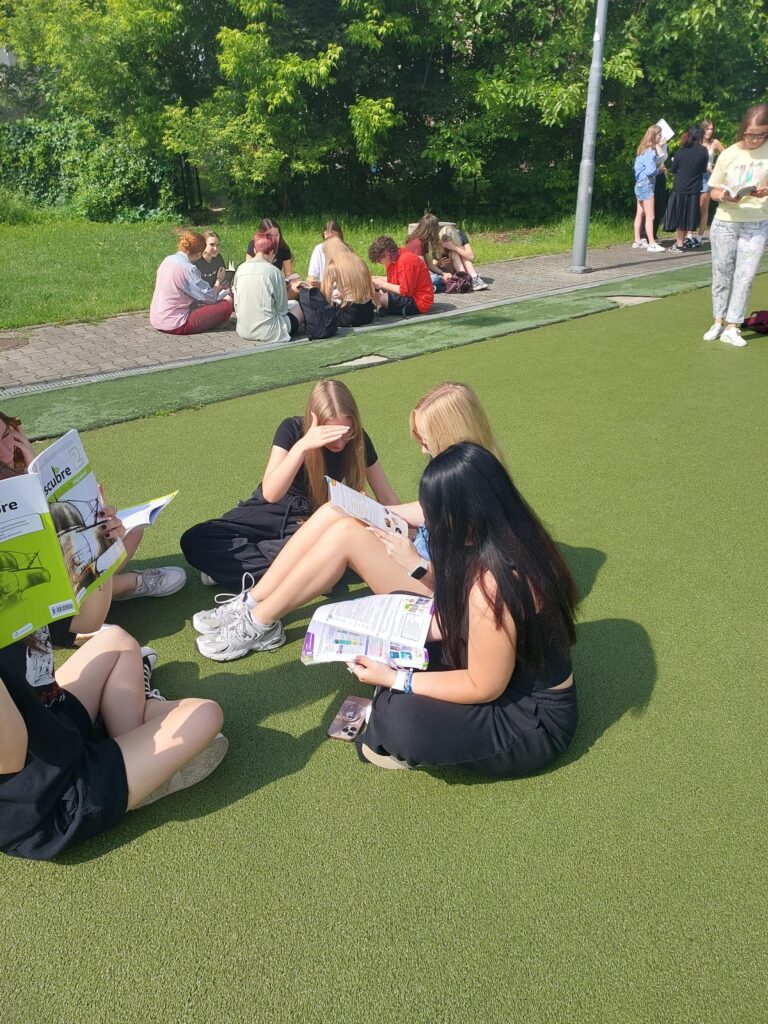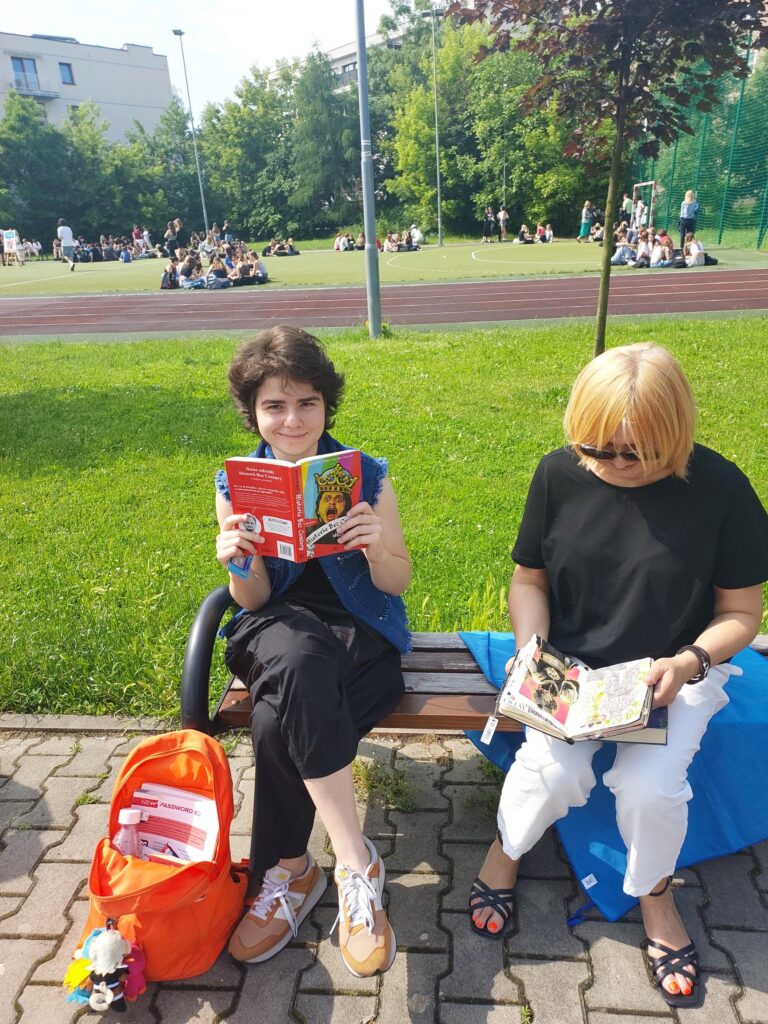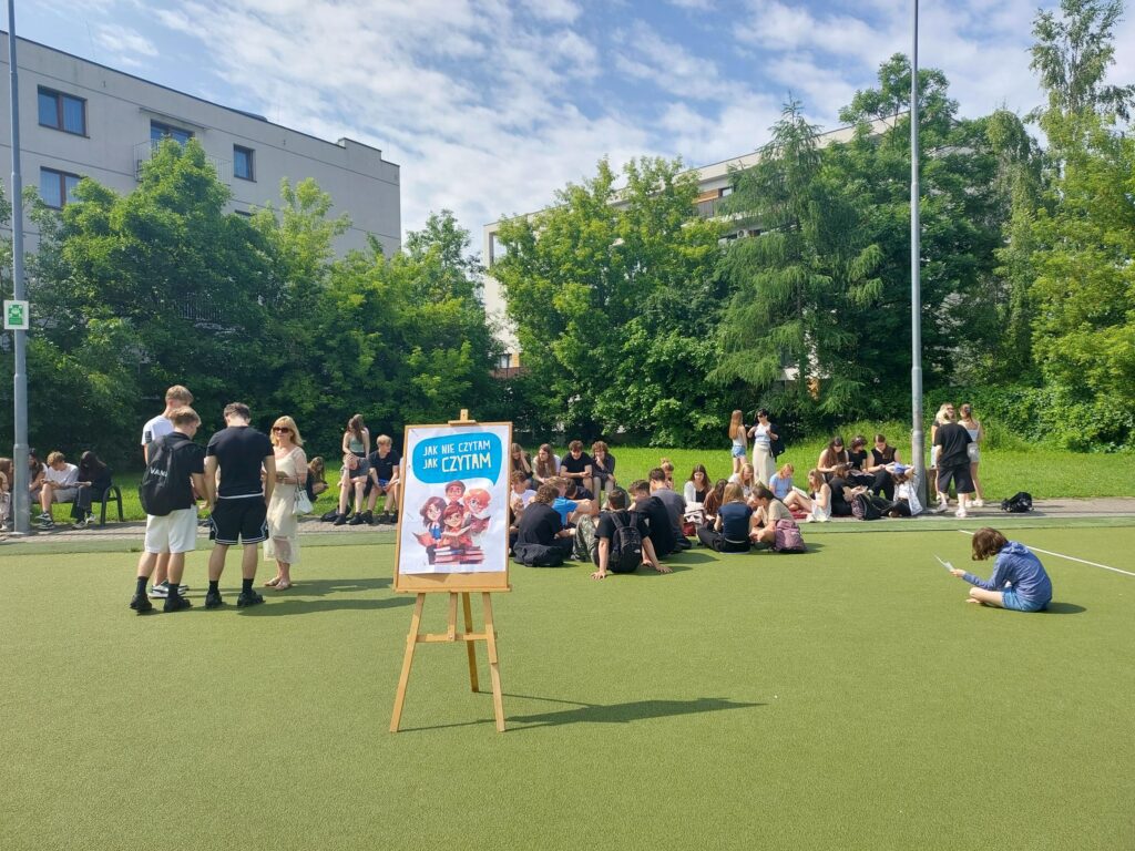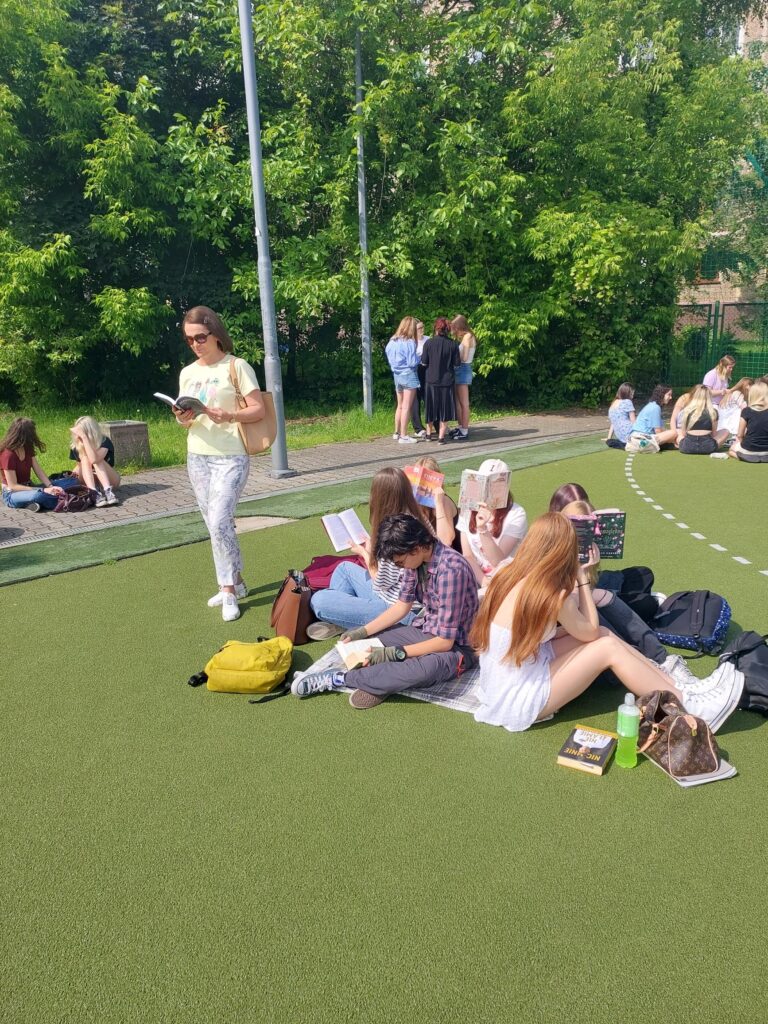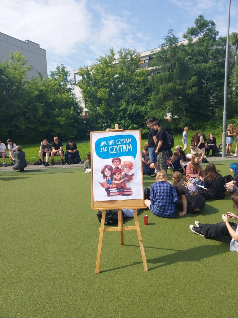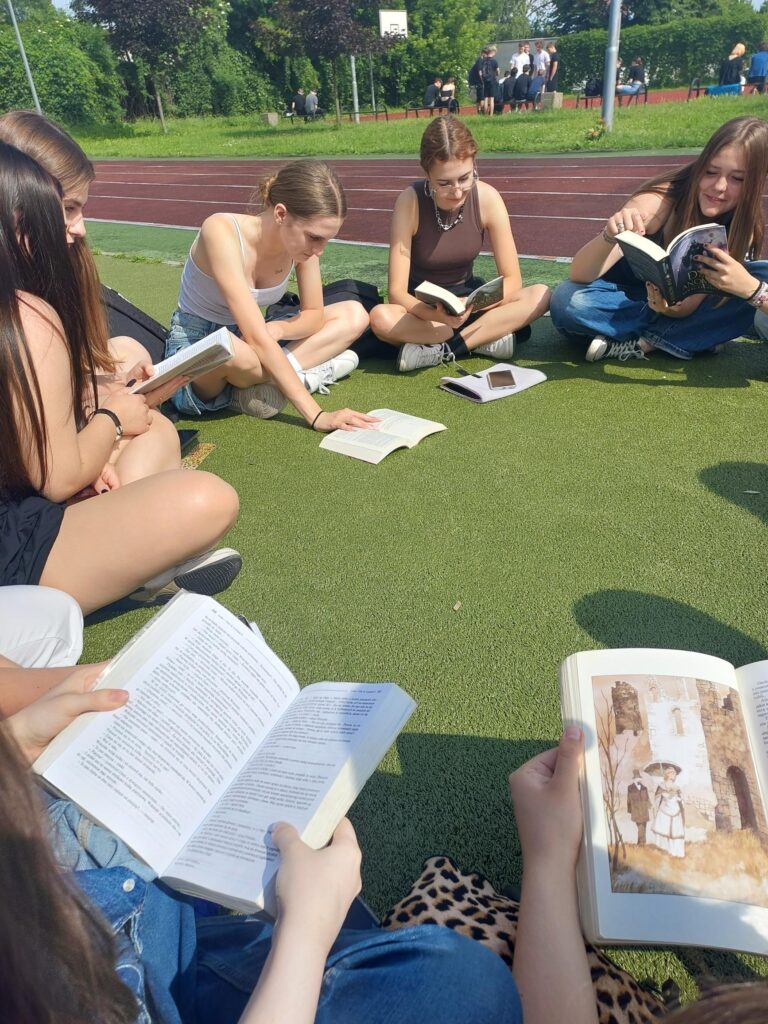6 czerwca o godzinie 9:45 społeczność naszego liceum wzięła udział w akcji , aby poczytać sobie w gronie koleżanek i kolegów, w miłych, niecodziennych okolicznościach. Dzięki tej inicjatywie sprawiliśmy, że książka w szkole nie kojarzyła się nam z obowiązkową lekturą, lecz z czymś przyjemnym, ze spokojem, z wolnym czasem spędzonym na łonie natury, rozrywką i piękną pogodą. Odkryliśmy więc radość z czytania! Cieszymy się, że akcja ta spotkała się z tak dużym zainteresowaniem ze strony uczniów. Wiele tytułów książek czytanych przez młodzież i nauczycieli znajdzie się również na liście zakupów do biblioteki szkolnej w ramach realizacji Narodowego Programu rozwoju czytelnictwa.