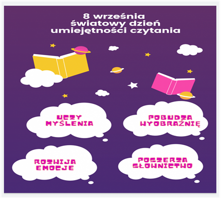 Światowy Dzień Umiejętności Czytania, znany również jako Międzynarodowy Dzień Alfabetyzacji, obchodzony jest 8 września. Święto zostało ustanowione przez UNESCO, aby zwrócić uwagę na znaczenie umiejętności czytania i pisania oraz na problem analfabetyzmu na świecie. Celem jest podkreślenie, jak kluczowa jest umiejętność czytania i pisania dla rozwoju jednostek i całego społeczeństwa. Święto zwraca uwagę na globalny problem analfabetyzmu i potrzebę zapewnienia edukacji wszystkim. Dzień ten to okazja do refleksji nad tym, dlaczego warto czytać i jak można zwiększyć dostępność i zrozumienie tekstów, zwłaszcza w dobie szybkich i skróconych form komunikacji. W naszej szkole uczniowie mogli obejrzeć okolicznościową wystawkę i wziąć udział w pogadankach na lekcjach języka polskiego, które podnosiły motywację do ćwiczeń sprawnego czytania.