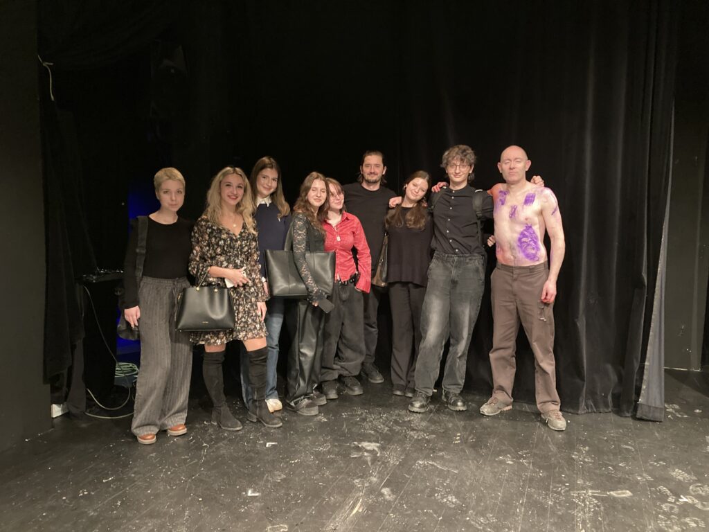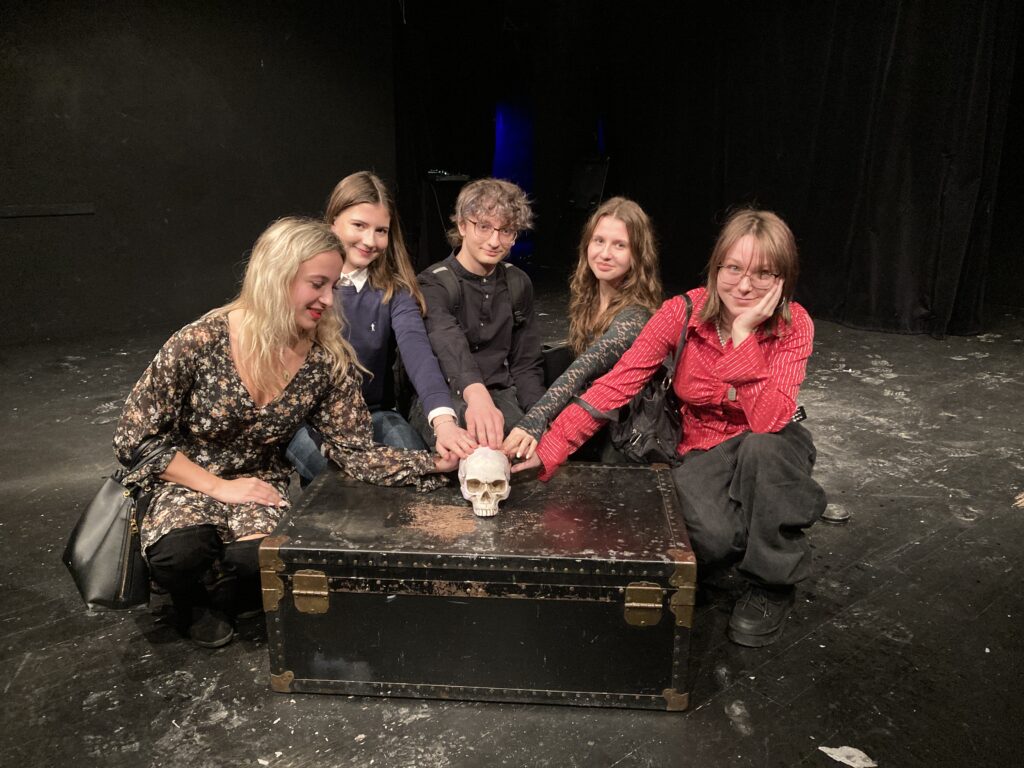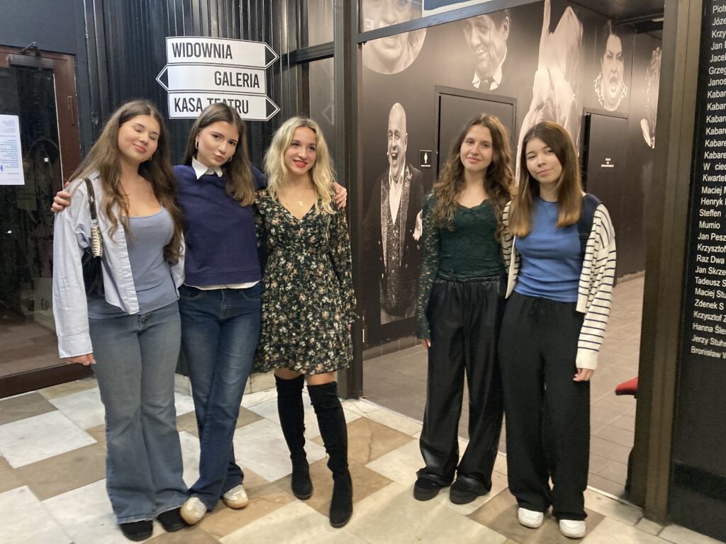 Uczniowie klasy humanistycznej 3a obejrzeli w dniu 8 grudnia 2025 roku w Teatrze Korez w Katowicach spektakl „Hamlet” w języku angielskim bez tłumaczenia w wykonaniu i reżyserii Peadara de Búrca. Jedna z naszych uczennic miała wyjątkową okazję zagrać na scenie epizod w inscenizacji „Zabójstwa Gonzagi” i to właśnie jej przypadła rola króla, któremu do ucha wlewana jest trucizna. Brawo Peadar de Búrca i brawo Hania Konieczko (uczestniczka Szkolnego Koła Teatralnego Adamantem)! Po spektaklu odbyła się dyskusja z twórcami spektaklu: aktorem i wykonawcą muzyki – Pawłem Gockiem. Całe wydarzenie było wyjątkową lekcją literatury, teatru i języka angielskiego.
