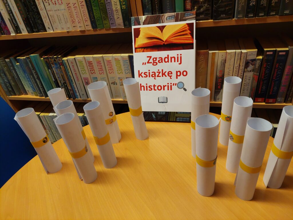 Uczniowie po zapoznaniu się z krótkimi opisami fabuł książek odgadują tytuły utworów. Zabawa ta to okazja do rozmów o ulubionych książkach oraz wymiany czytelniczych rekomendacji.