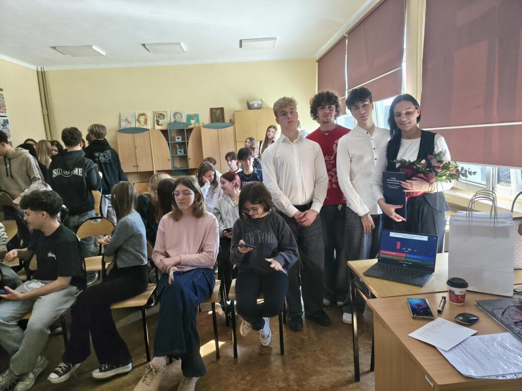 9 marca w ramach obchodów Dnia Kobiet gościliśmy Panią Annę Szostak. Spotkanie „Współczesne portrety Dąbrowianek” miało charakter motywacyjny i pokazało uczniom, że determinacja oraz wiara w siebie jest podstawą realizacji marzeń. Prelegentka jest właścicielką Biura Podróży Pamar Travel w Dąbrowie Górniczej oraz gabinetu kosmetycznego Beauty Studio Anna Szostak. Pani Anna działa także społecznie i jest członkinią Rady Kobiet w Dąbrowie Górniczej. Podczas warsztatów opowiedziała o problemach związanych z prowadzeniem własnej działalności gospodarczej oraz o wyzwaniach, jakie pojawiają się na drodze zawodowej kobiet. Uczniowie wzięli również udział w konkursie wiedzy z przedsiębiorczości. Jednym z głównych przesłań spotkania było uświadomienie młodym ludziom, jak ważne jest poszukiwanie pasji oraz odwaga w podejmowaniu wyzwań. Podkreśliła również, jak istotne jest otaczanie się ludźmi, którzy nas wspierają.