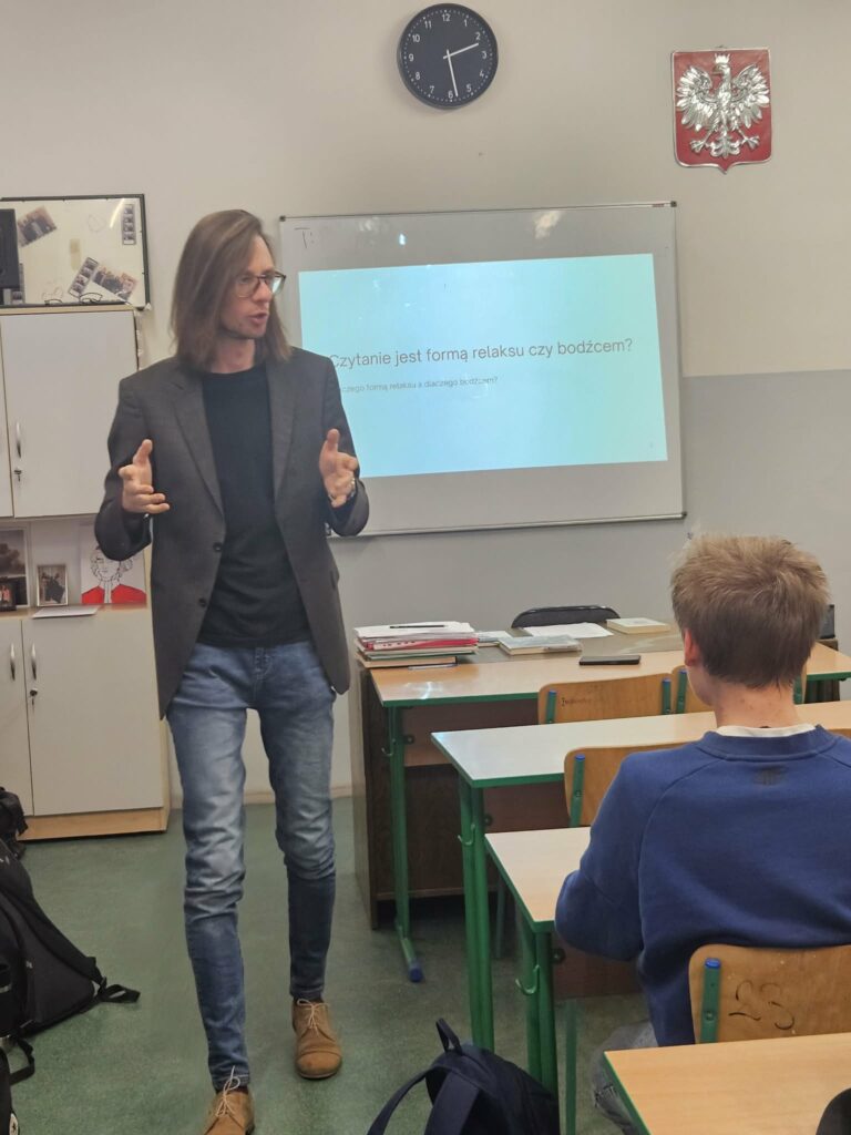 11 marca br. w ramach Festiwalu Nauki gościliśmy pracowników Miejskiej Biblioteki Publicznej. Wykłady poświęcone były promocji różnych gatunków książki jako środka wyrazu artystycznego. Pan Adrian Witczak oraz pan Andrzej Wilanowski zachęcali licealistów do tego, aby traktowali książkę jako alternatywną dla mediów społecznościowych formę spędzania wolnego czasu.
