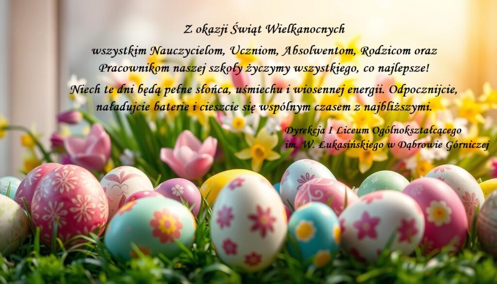 Z okazji Świąt Wielkanocnych Tomasz 2026-04-02 Bez kategorii Nawigacja wpisu Poprzedni Poprzedni wpis: Wizyta Akademii Górnośląskiej w naszej szkole – zajęcia dla klasy 3g